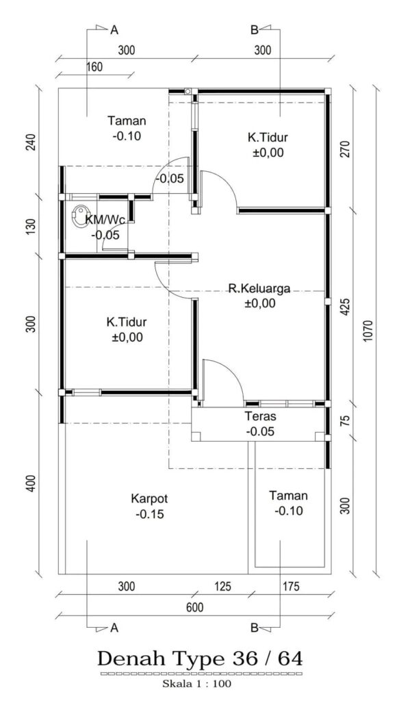 Type unit yang tersedia adalah type 36/64, dengan 2 kamar tidur, 1 kamar mandi